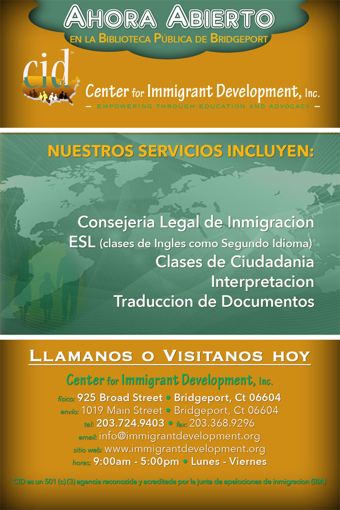 CID’s core program is legal immigration counseling. The agency strives to meet the demand of a growing population of immigrants in Fairfield County with proper education and legal immigration counseling. Our legal immigration services include: